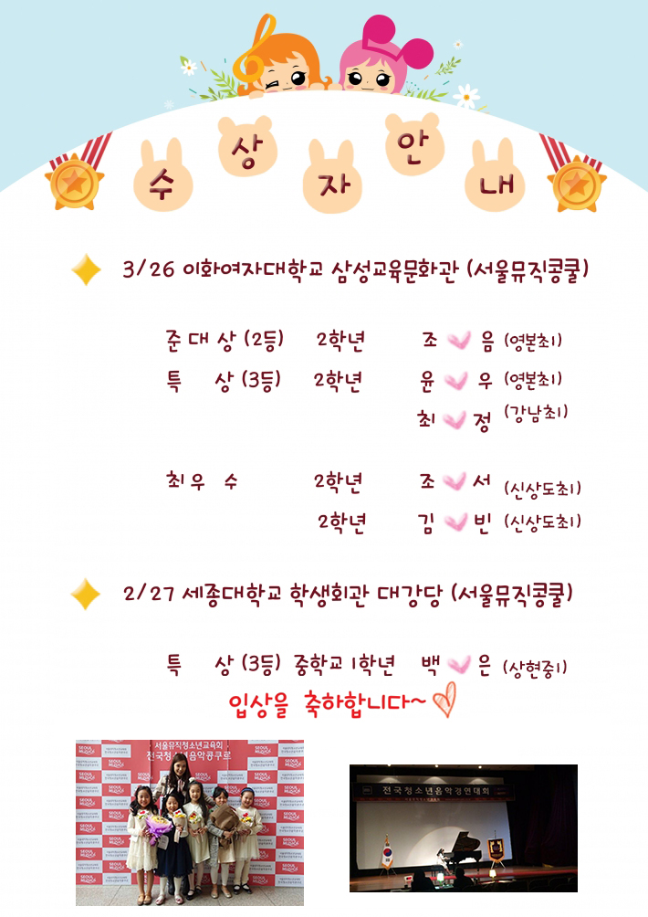 이대 서울뮤직콩쿨과 세종대 콩쿨 수상을 쓸어왔어용 !