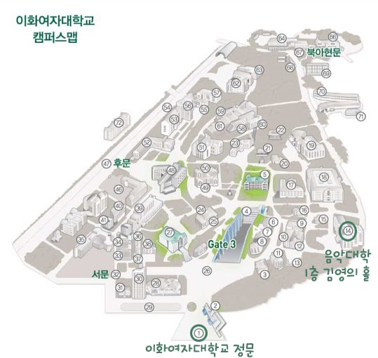네비주소 : (신주소) 서울특별시 서대문구 이화여대길 52 이화여자대학교