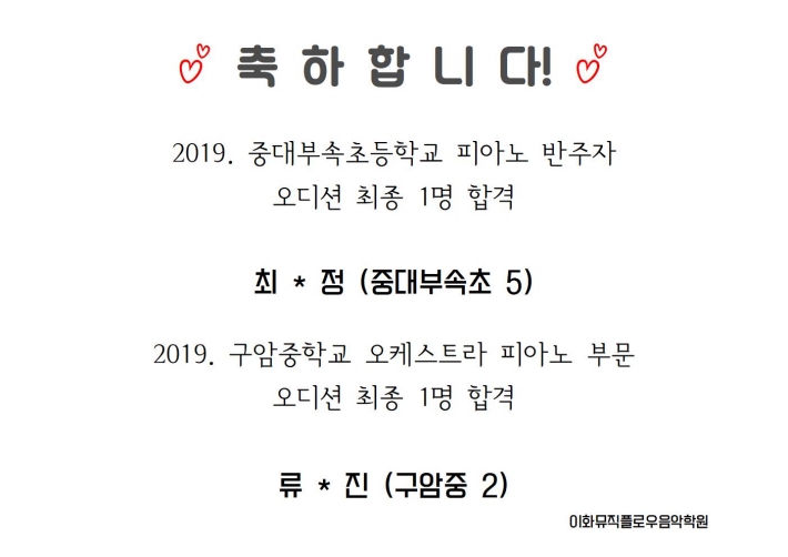 19년 2,3월 콩쿨 수상,오디션 합격을 축하합니다~*