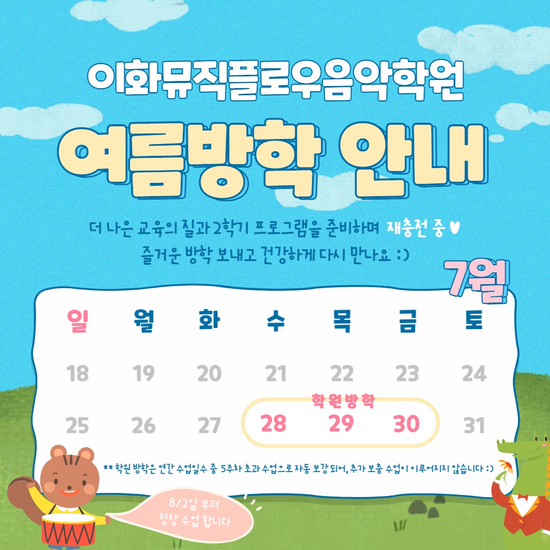 이화뮤직플로우 여름방학 안내 (7/28-30일 3일간)