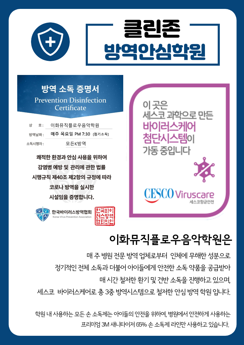 더욱 안심하고 아이들을 보내실 수 있는 이화뮤직플로우가 되겠습니다🎶💖