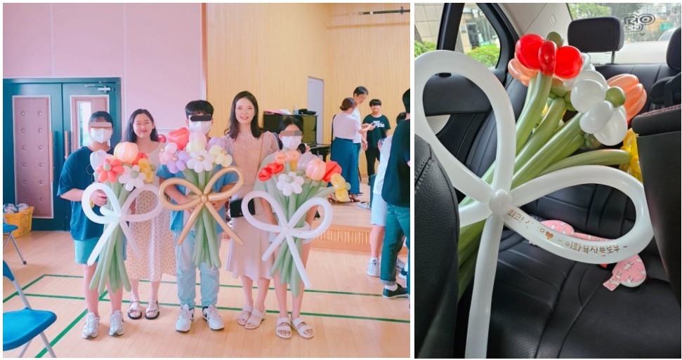 아이들 이름을 새긴 꽃다발까지 한아름 안고갔는데