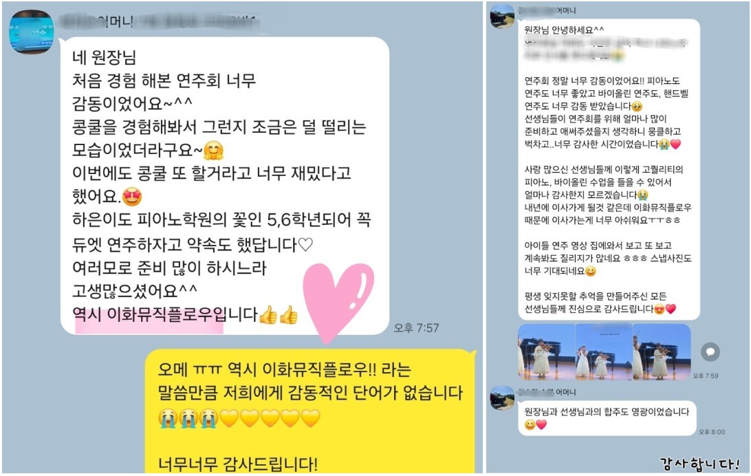 학부모님들의 감사 인사는 저희에게 큰 힘이 되어 앞으로도 더 나은 음악교육을 위해 힘쓰고있습니다. 🙏